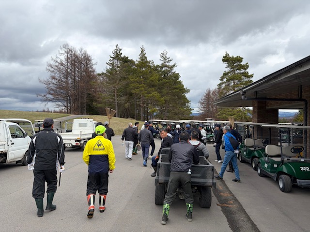 作業を致しました。まだコース内には残雪や泥濘がありますが、オープン日には良いコンディションで